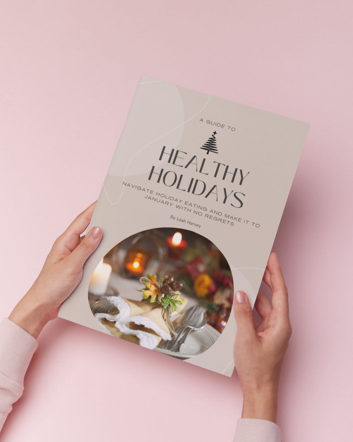 Grab my 12-page PDF guide on navigating the holidays and equip yourself with tips, insights, strategies, and motivation to navigate holiday eating, and make it to January with no regrets!